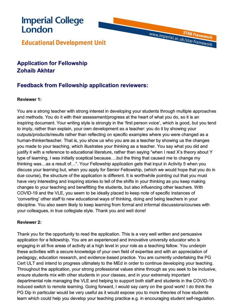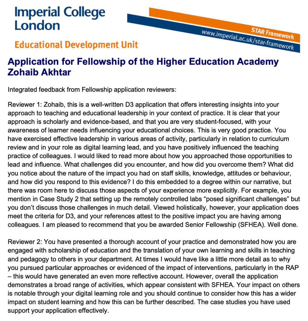 I received excellent feedback on my Senior Fellowship application for Advance HE, submitted last month.
